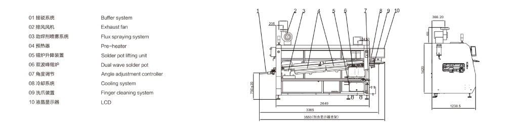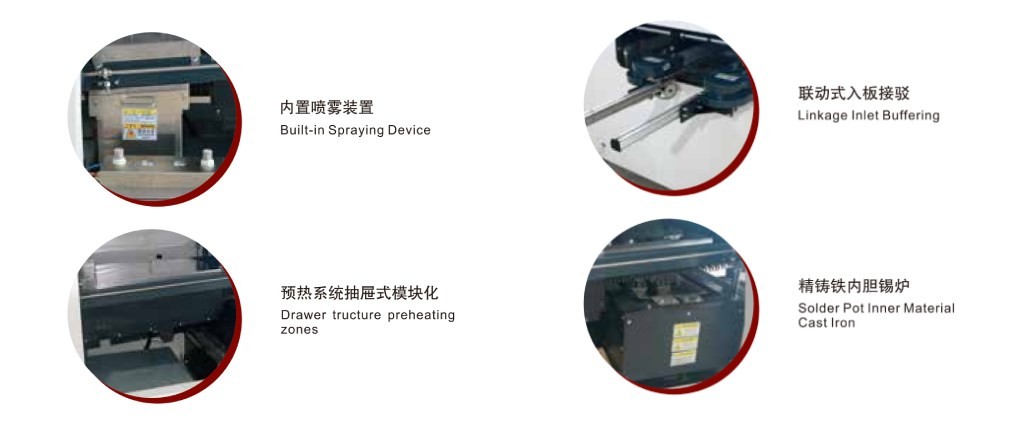 ●錫爐采用外熱式加熱,錫爐內(nèi)膽采用鑄鐵制作,內(nèi)表面防腐蝕處理,兩個低流速噴口、低氧化量設(shè)計;